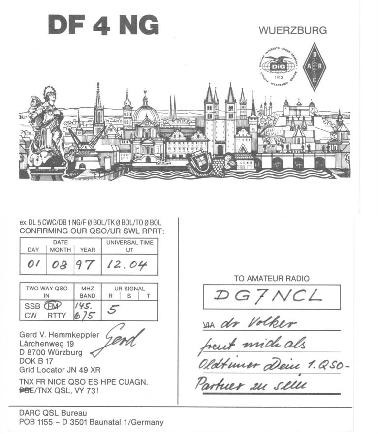 Mein erstes QSO mit meinem Funkfreund Gerd DF4NG (SK 2024), der mich über ein viertel Jahrhundert bei unserem gemeinsamen Hobby begleitete. vy 77 mein Freund!